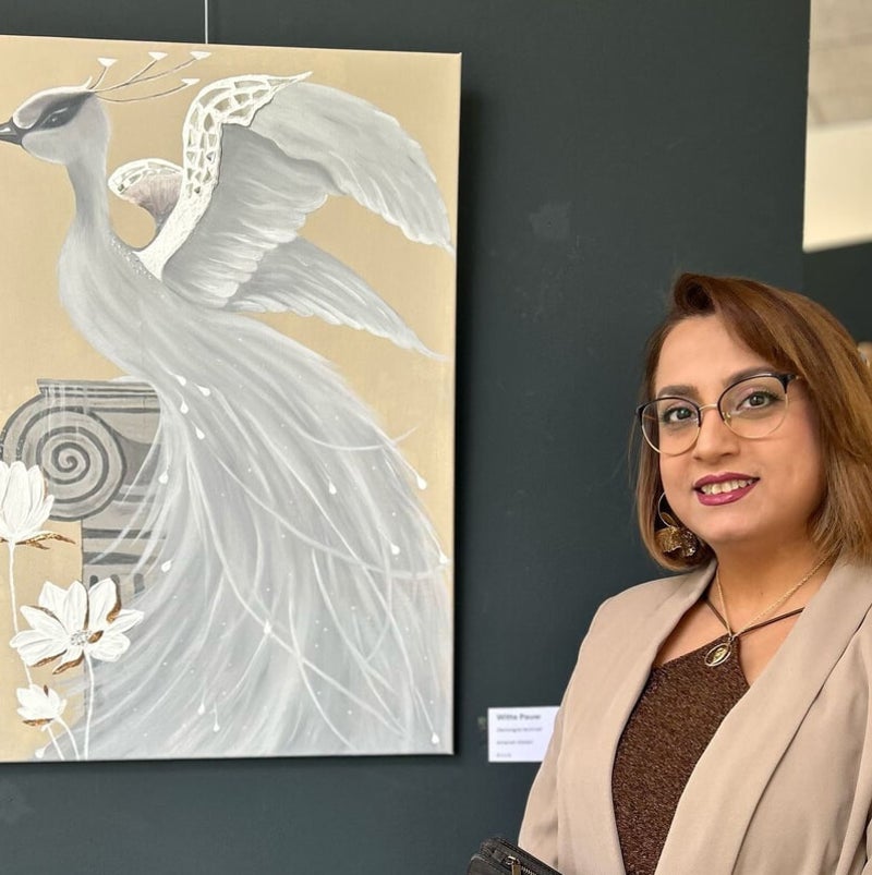 In Nederland heb ik kennisgemaakt met acrylverf en maak ik allerlei schilderijen. Kortgeleden ben ik begonnen met het beschilderen van glazen vazen en kruiken. Deze versier ik met bloemen, vlinders, vogels, uitvergrote insecten en andere dieren. Dit geeft mij veel voldoening en het leidt me af van de dagelijkse zorgen.