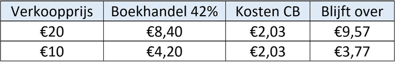 - Bovendien moeten voor elk boek dat via het CB verkocht wordt nog distributiekosten worden betaald. Deze bedragen voor Nederland in 2025 €1,68 + 21% BTW = €2,03