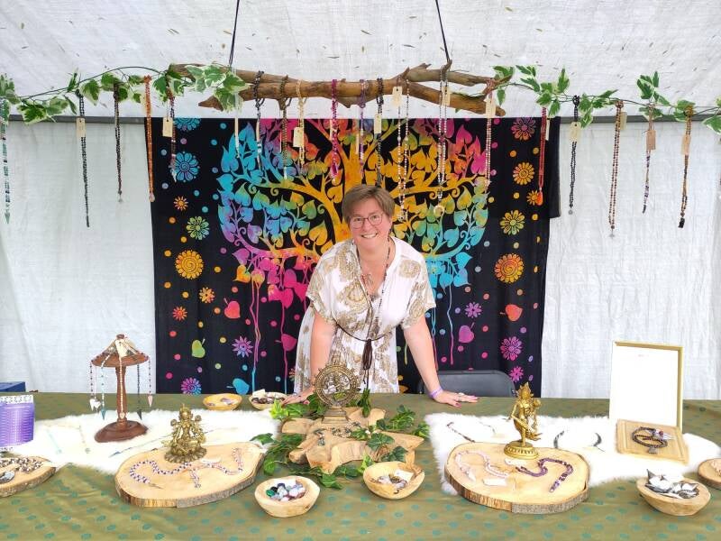 Vooraf kun je jouw steensoort kiezen uit mijn collectie van meer dan 20 verschillende soorten edelsteen-kralen, en kies je wat je afwerking gaat zijn (edelsteen of echt zilver). Je mag het ook helemaal uit handen geven en het laten ontstaan. Ik laat het patroon, de combinatie die wil ontstaan in rust ontvouwen. Wat er precies ontstaat zal dan ook een verrassing zijn. Bij deze persoonlijke mala’s komen er boodschappen door tijdens het knopen die ik voor je opschrijf, en je meegestuurd krijgt met je unieke mala in een mooi bewaartasje.